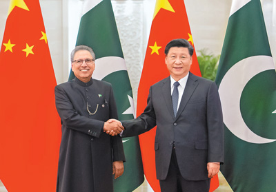 习近平强调,当前,中国政府和中国人民正在为夺取抗击新冠肺炎疫情最终全面胜利而努力奋斗。疫情发生之初,总统先生第一时间向我致函慰问,这次又专程访华,表达对中方的坚定支持。巴基斯坦政府和社会各界倾己所有,向中方捐赠防疫物资,中方对此深表感谢。事实再次证明,中巴两国是患难与共的真朋友、同甘共苦的好兄弟。中巴特殊友谊是历史的选择,深深扎根于两国人民心中。