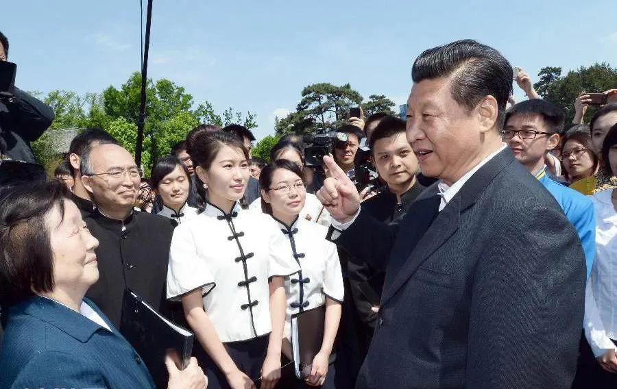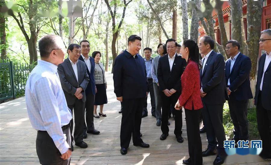2018年5月2日,习近平总书记来到北京大学考察。这是总书记在北京大学临湖轩北侧的小庭院看望部分资深教授和中青年教师代表,并同他们亲切交谈(新华社记者 李学仁 摄)