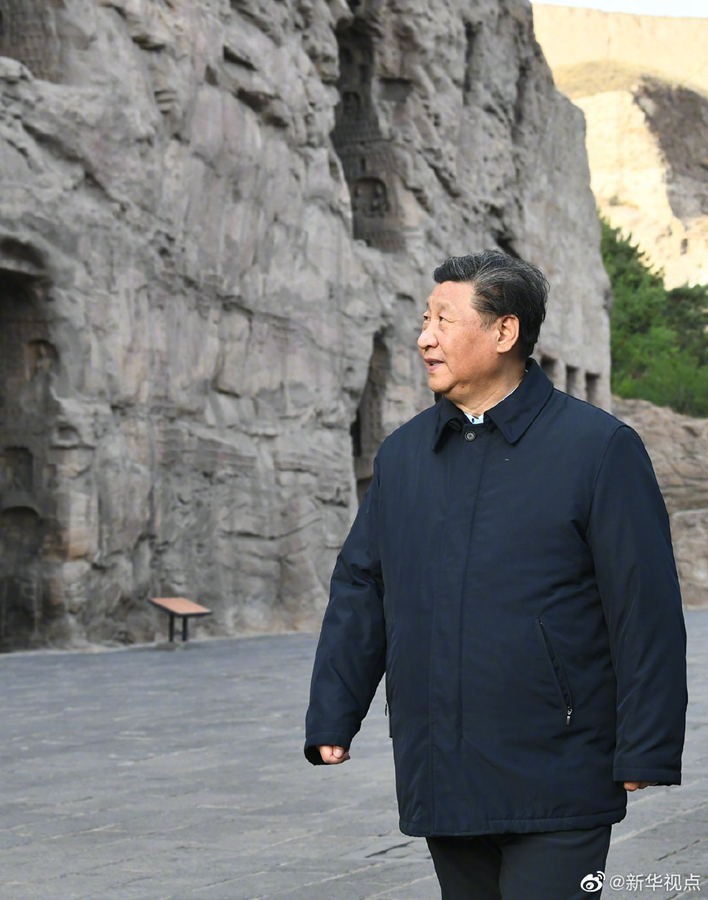 习近平总书记11日赴山西考察调研。当天下午,他首先来到大同市云州区有机黄花标准化种植基地、西坪镇坊城新村,了解巩固脱贫攻坚成果工作情况。之后,前往云冈石窟实地了解历史文化遗产保护情况。(文字记者:张晓松、朱基钗 摄影记者:李学仁、谢环驰、刘彬)