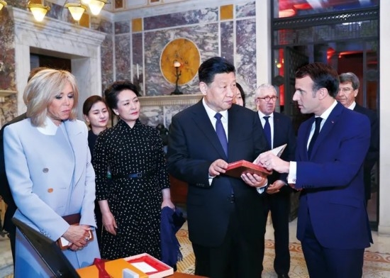 2019年3月24日,习近平在法国尼斯会见法国总统马克龙。会见前,马克龙向习近平赠送1688年法国出版的首部《论语导读》法文版原著。