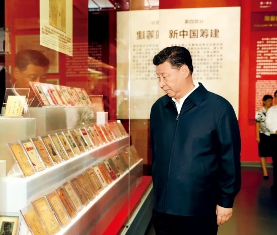 2019年9月12日,习近平视察中共中央北京香山革命纪念地,参观《为新中国奠基》主题展览。