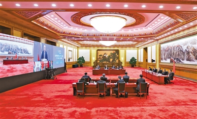 十一月十七日晚,金砖国家领导人第十二次会晤以视频方式举行。国家主席习近平在北京出席会晤并发表重要讲话。新华社记者 李学仁摄