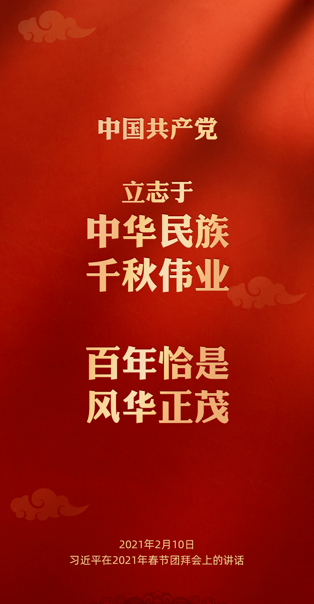 “大鹏一日同风起,扶摇直上九万里。”100年来,中国共产党秉持为中国人民谋幸福的初心、为中华民族谋复兴的使命,不畏艰难险阻,不惧流血牺牲,团结带领全国各族人民浴血奋斗、发愤图强、改革开放,中华民族迎来了从站起来、富起来到强起来的伟大飞跃。今天,中国共产党已经发展成为一个走过百年光辉历程、在最大的社会主义国家执政70多年、拥有9100多万党员的世界上最大的马克思主义执政党,得到了14亿中国人民最广泛的支持和拥护。中国共产党立志于中华民族千秋伟业,百年恰是风华正茂!我们要认真回顾走过的路,不能忘记来时的路,继续走好前行的路,坚定理想信念,牢记初心使命,植根人民群众,始终保持蓬勃朝气、昂扬斗志。只要我们党始终站在时代潮流最前列、站在攻坚克难最前沿、站在最广大人民之中,就必将永远立于不败之地!