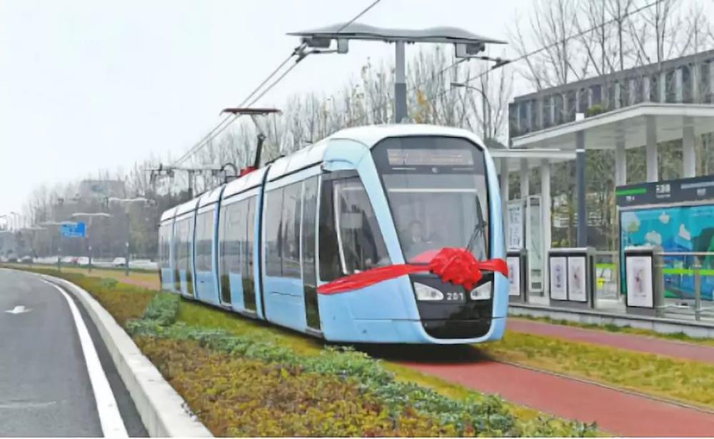 2018年12月26日,四川首条有轨电车线路——蓉2号线首开段在成都市郫都区蓉2号线德富大道站驶出(图片来源:四川日报)