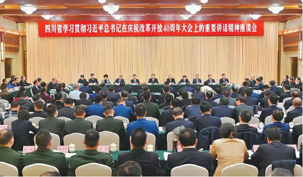 2018年12月26日,四川省学习贯彻习近平总书记在庆祝改革开放40周年大会上的重要讲话精神座谈会在成都召开(四川日报记者 欧阳杰 摄,图片来源:四川日报)