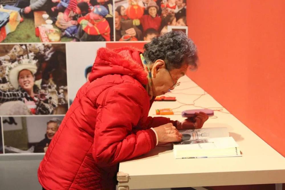 2018年12月18日,参观者在展馆聚精会神阅读四川省委改革办、四川省地方志办编纂的《四川改革开放四十周年大事记》(刘艳平 摄,图片来源:四川省地方志工作办公室)