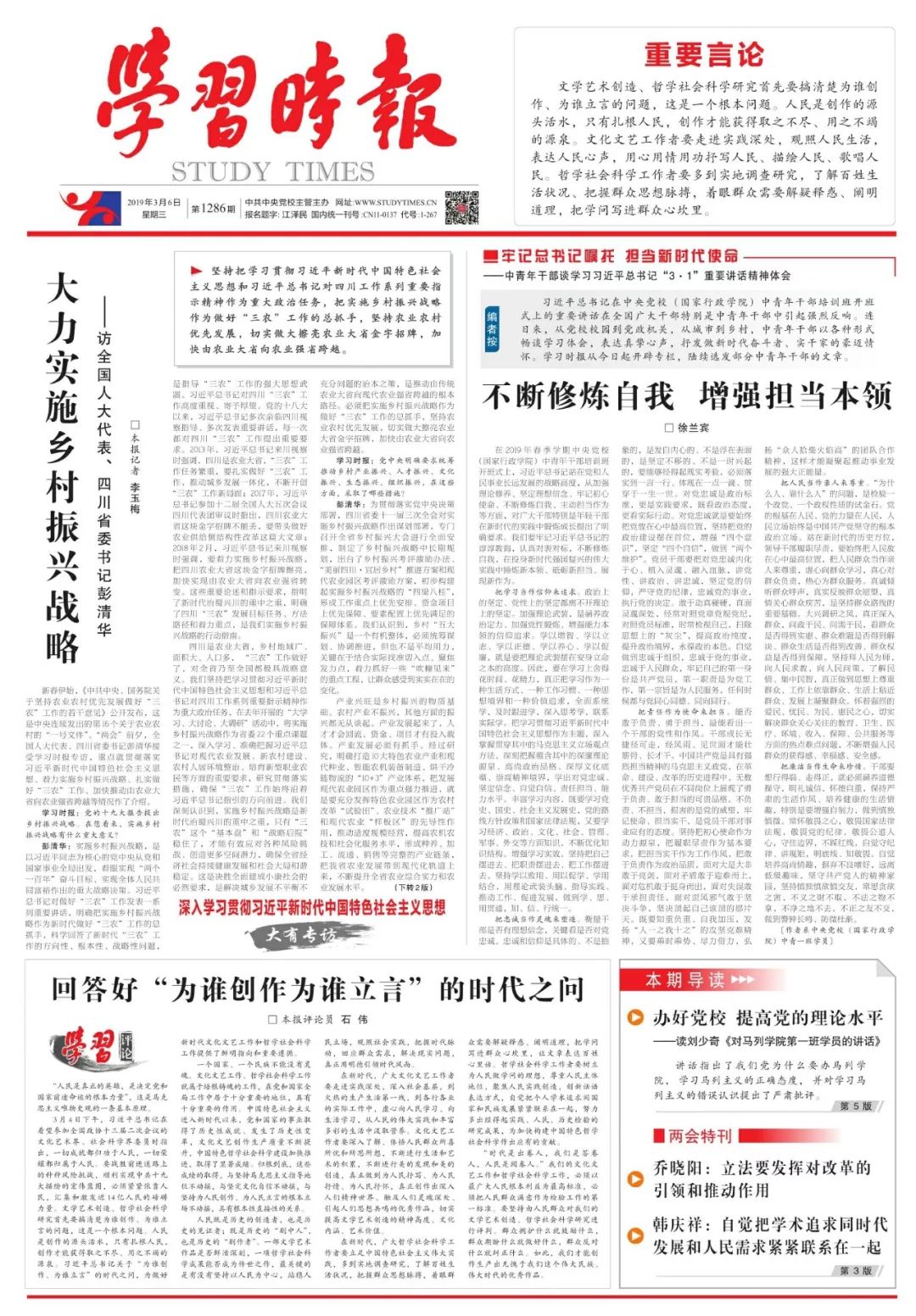 3月6日 《学习时报》头版头条发表记者李玉梅对全国人大代表、四川省委书记彭清华的专访文章《大力实施乡村振兴战略——访全国人大代表、四川省委书记彭清华》。