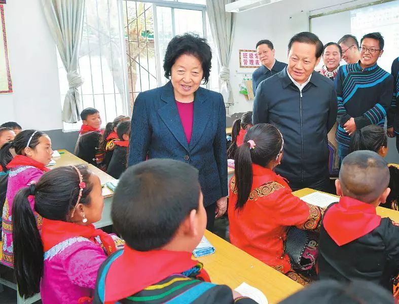 3月21日,中共中央政治局委员、国务院副总理孙春兰在省委书记彭清华陪同下,来到凉山州昭觉县洒拉地坡乡中心校调研,了解控辍保学、贫困学生资助、普通话推广、教师队伍建设等情况(四川日报记者 欧阳杰 摄)