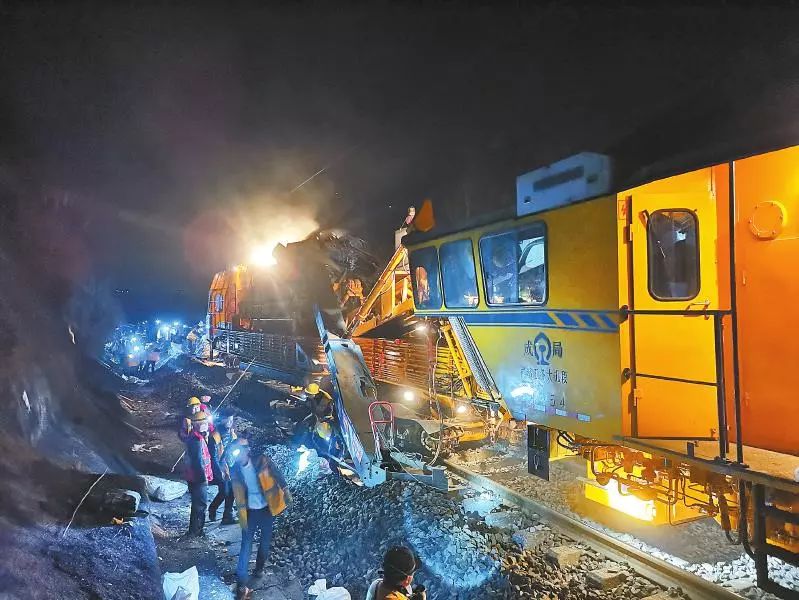 3月21日晚,成都工务大机段QS650K型全断面道砟清筛车在成渝线清筛作业( 董帅玺 摄)
