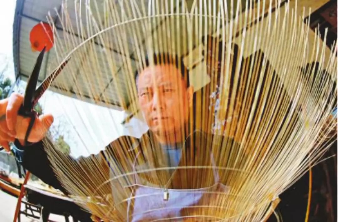 德阳潮扇省级传承人杨占勇正在指导村民们学习潮扇制作。张智勇摄(视觉四川)