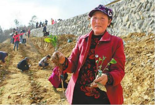 3月11日,广元市青川县沙州镇青坪村组织村民准备栽植“白叶一号”茶苗(唐彪 摄)