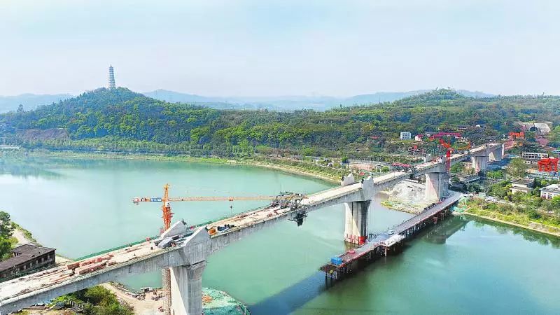 4月6日,川南城际铁路控制性重点工程内江三元沱江特大桥正式合龙。