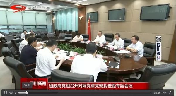 8月20日,省政府党组召开对照党章党规找差距专题会议,省委副书记、省长、省政府党组书记尹力主持会议并讲话(图片来源:四川在线)