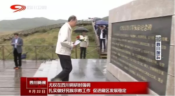 8月19日至21日,中共中央书记处书记、中央统战部部长尤权在红军长征纪念碑前献花(图片来源:四川在线)