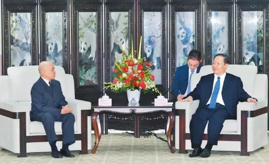 9月19日,省委书记、省人大常委会主任彭清华在成都会见柬埔寨国王西哈莫尼(四川日报记 欧阳杰 摄 图片来源:四川日报)