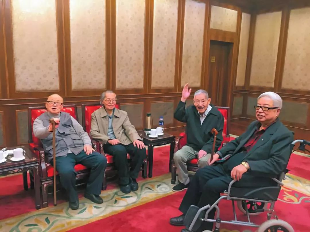 9月20日,在“庆祝新中国成立70周年·‘从事文学创作70年荣誉证书’颁发仪式暨四川文学创作学术研讨会”上,木斧、方赫、白航、李致(从左至右)四位作家老友出席,畅叙往事(图片来源:华西都市报)