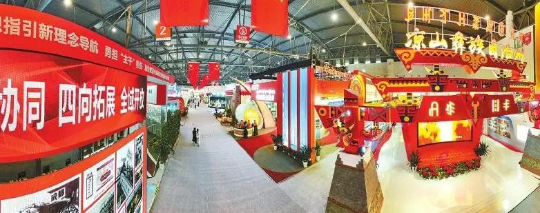 “壮丽七十年阔步新时代——四川省庆祝中华人民共和国成立70周年大型成就展”市州组合馆中的凉山馆(四川日报记者 郝飞 摄,图片来源:四川日报)