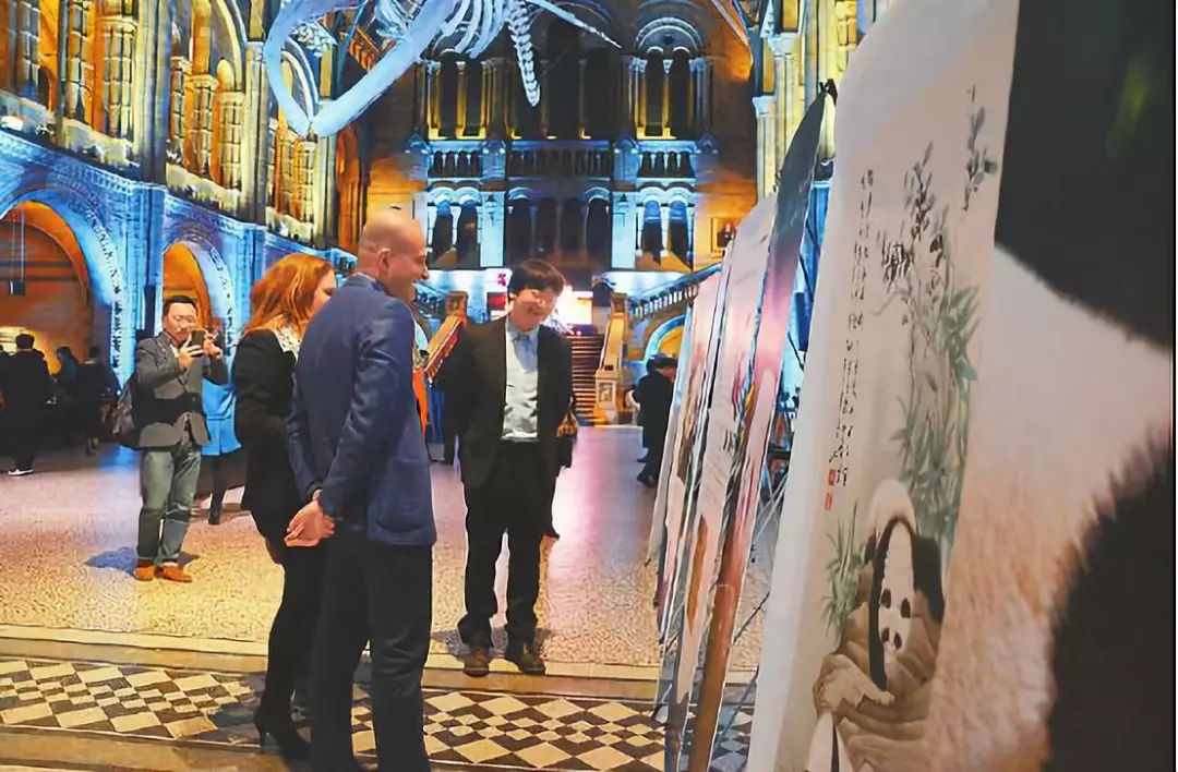 伦敦当地时间12月9日晚,“万物有灵·四川之夜”主题活动在英国自然历史博物馆举行,图为嘉宾在看展览(图片来源:四川日报)