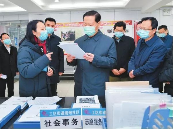 1月27日,省委书记彭清华到绵阳市涪城区工区街道绵州社区,检查督导新型冠状病毒感染的肺炎疫情防控工作。在社区服务中心,彭清华仔细查看人员防控体系台账、走访摸排汇总表等资料(四川日报记者 欧阳杰 摄,图片来源:四川日报)