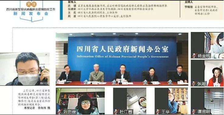 2月12日,四川省政府新闻办在蓉举行四川省新型冠状病毒肺炎疫情防控工作新闻发布会(第三场),此次新闻发布会四川省首次尝试以网络在线发布的形式通报情况(图片来源:四川日报)