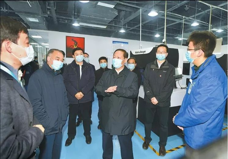 2月12日,省委书记、省委应对新型冠状病毒肺炎疫情工作领导小组组长彭清华到位于天府国际生物城的瀚辰光翼科技公司调研,了解员工到岗、疫情防控、产品研发等情况(四川日报记者 欧阳杰 摄,图片来源:四川日报)