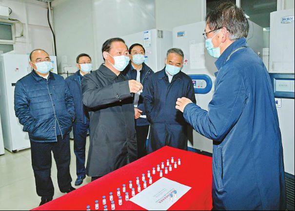 省委书记、省委应对新型冠状病毒肺炎疫情工作领导小组组长彭清华到四川大学生物治疗国家重点实验室调研,了解新冠病毒疫苗研制进展(四川报记者 欧阳杰 摄,图片来源:四川日报)