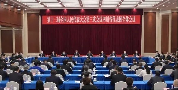 5月28日上午,十三届全国人大三次会议四川代表团在驻地举行全体会议,审议即将提交大会表决的各项决议草案和有关建议表决稿(图片来源:四川在线)