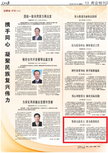 5月27日 四川省委书记、省人民政府省长尹力在《人民日报 》发表署名文章《坚持人民至上 着力改善民生》。文章指出,四川将全面做好新冠肺炎疫情外防输入、内防反弹工作,充分发挥专业防控和社区防控作用,实施疾病预防救治能力提升三年行动,更好保障人民生命安全和身体健康。坚持以保促稳、稳中求进,扎实做好“六稳”工作、落实“六保”任务,把农业多贡献、工业挑大梁、投资唱主角、消费促升级作为全省经济工作着力点,加快生产生活秩序全面恢复,着力改善民生。坚决攻克凉山最后的深度贫困堡垒,确保全省剩余的7个县摘帽、300个村退出、20万人脱贫,坚决打赢脱贫攻坚战。