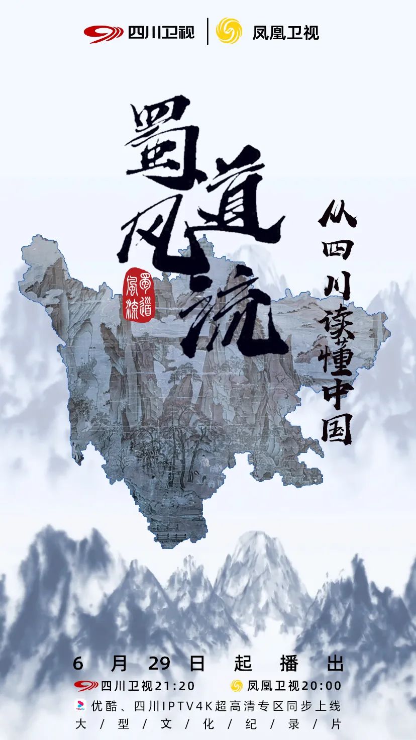 6月29日起 由四川广播电视台、凤凰卫视历时两年精心拍摄的10集文化纪录片《蜀道风流》,将每晚在四川卫视、凤凰卫视播出,优酷、四川IPTV 4K超高清专区同步上线。