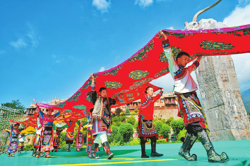 6月25日,茂县羌族群众赛歌赛舞,欢庆“瓦尔俄足节”(四川在线记者 华小峰 摄,图片来源:四川日报)