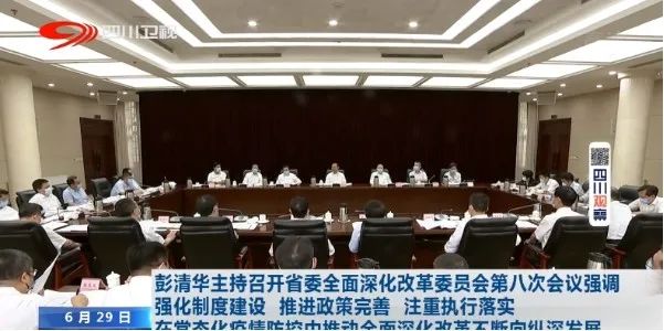 6月29日 省委全面深化改革委员会第八次会议召开,省委书记、省委全面深化改革委员会主任彭清华主持会议并讲话。他强调,习近平总书记在中央全面深化改革委员会第十三次会议上的重要讲话,为我们做好常态化疫情防控条件下的全面深化改革工作提供了根本遵循。各级各部门要认真学习领会,准确把握新形势新任务,深化对改革规律的认识,强化制度建设,推进政策完善,注重执行落实,确保四川省全面深化改革不断向纵深发展。