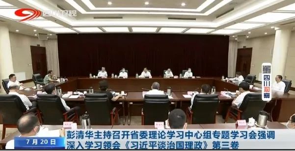 7月20日 省委理论学习中心组举行专题学习会,集中学习研讨《习近平谈治国理政》第三卷。省委书记彭清华主持会议并讲话。他强调,全省党员干部要深入学习领会《习近平谈治国理政》第三卷,持续在学懂弄通做实党的创新理论上下功夫,坚定用以武装头脑、指导实践、推动工作,为决胜全面小康、决战脱贫攻坚,夺取疫情防控和经济社会发展双胜利,推动治蜀兴川再上新台阶提供科学指引。