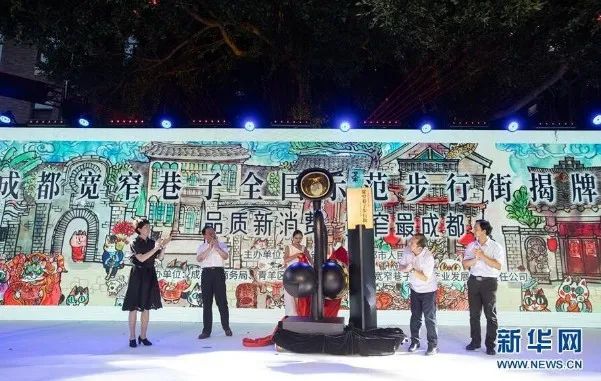 8月10日晚,全国示范步行街揭牌仪式在宽窄巷子举行(图片来源:新华网)