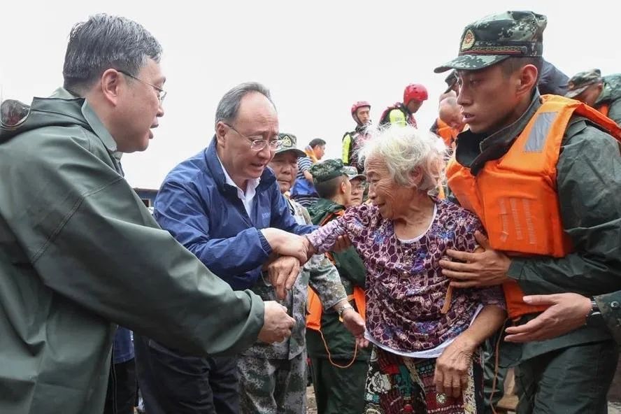 8月18日,省委副书记、省长尹力前往乐山市指导抗洪抢险工作,看望慰问受灾群众和奋战在抗洪抢险一线的部队官兵、地方干部群众(图片来源:四川在线)