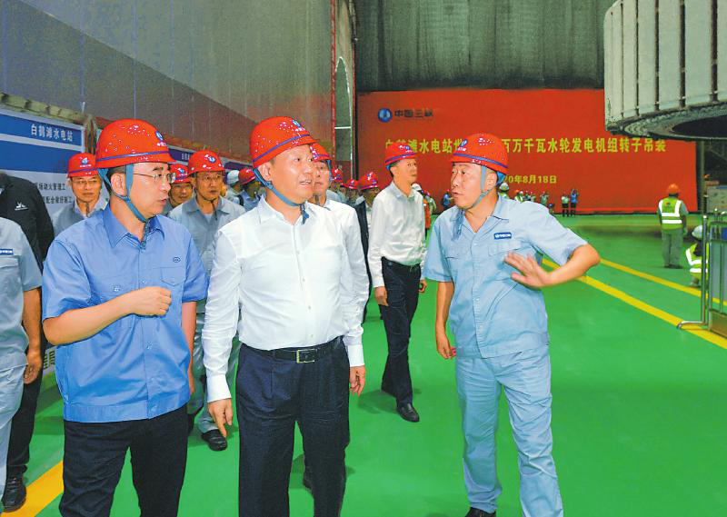 8月18日,省委书记彭清华到位于四川省宁南县和云南省巧家县交界处的白鹤滩水电站调研,在左岸地下厂房了解建设进度和设备安装情况(四川日报记者 欧阳杰 摄,图片来源:四川日报)
