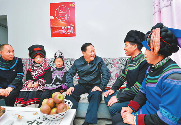 10月12日,省委书记彭清华到越西县越城镇城北感恩社区调研,看望已搬入新家的脱贫群众,了解他们的生产生活情况(四川日报全媒体记者 欧阳杰 摄,图片来源:四川日报)