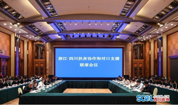 10月21日,浙江•四川扶贫协作和对口支援联席会议在成都召开。四川省委副书记、省长尹力,浙江省委副书记、省长郑栅洁出席会议并讲话(图片来源:四川在线)