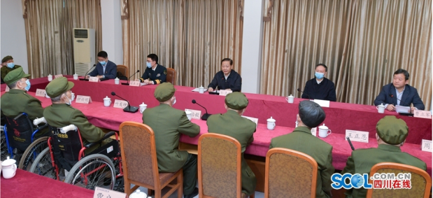 10月21日下午,省委书记、省军区党委第一书记彭清华前往省革命伤残军人休养院,传达习近平总书记重要回信,看望慰问革命伤残军人,与革命伤残军人代表座谈(图片来源:四川在线)