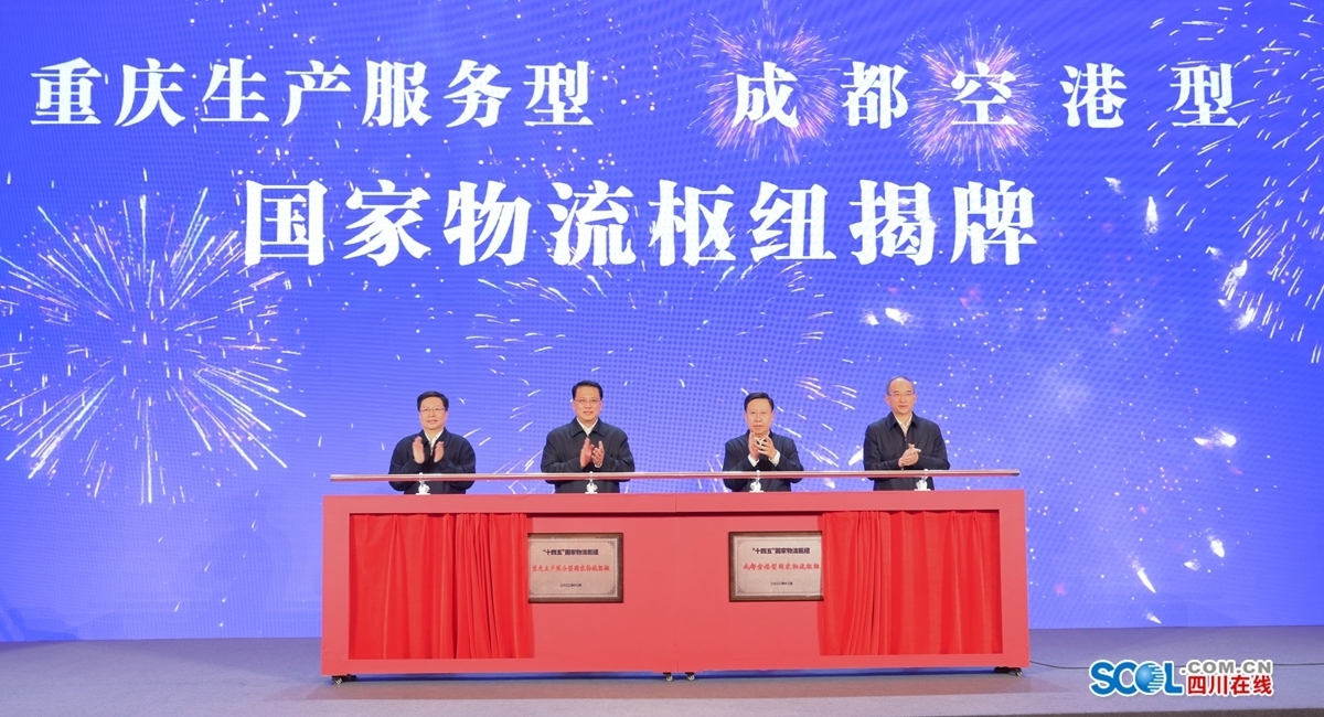 会前,双方举行了川渝共建改革开放新高地推进活动,通过视频连线方式听取了共建世界级机场群、共建对外开放大通道有关项目建设情况汇报,举行了共建西部陆海新通道川渝总运量突破60万标箱发车仪式。活动中,袁家军、王晓晖、胡衡华、黄强共同为重庆生产服务型、成都空港型两个国家物流枢纽揭牌。