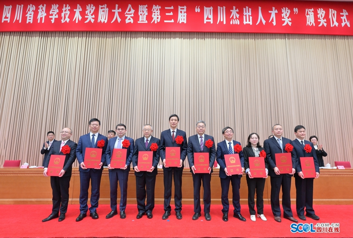 会上,宣读了省政府《关于2022年度四川省科学技术奖励的决定》和省委、省政府《关于授予王玉忠等14人第三届“四川杰出人才奖”的决定》。在热烈掌声中,王晓晖为省科学技术杰出贡献奖获得者王琪、赵金洲颁奖。随后,王晓晖、黄强等省领导为四川杰出人才奖和省科学技术奖获奖代表颁奖。获奖代表王琪、王海峰、翟婉明作交流发言。
