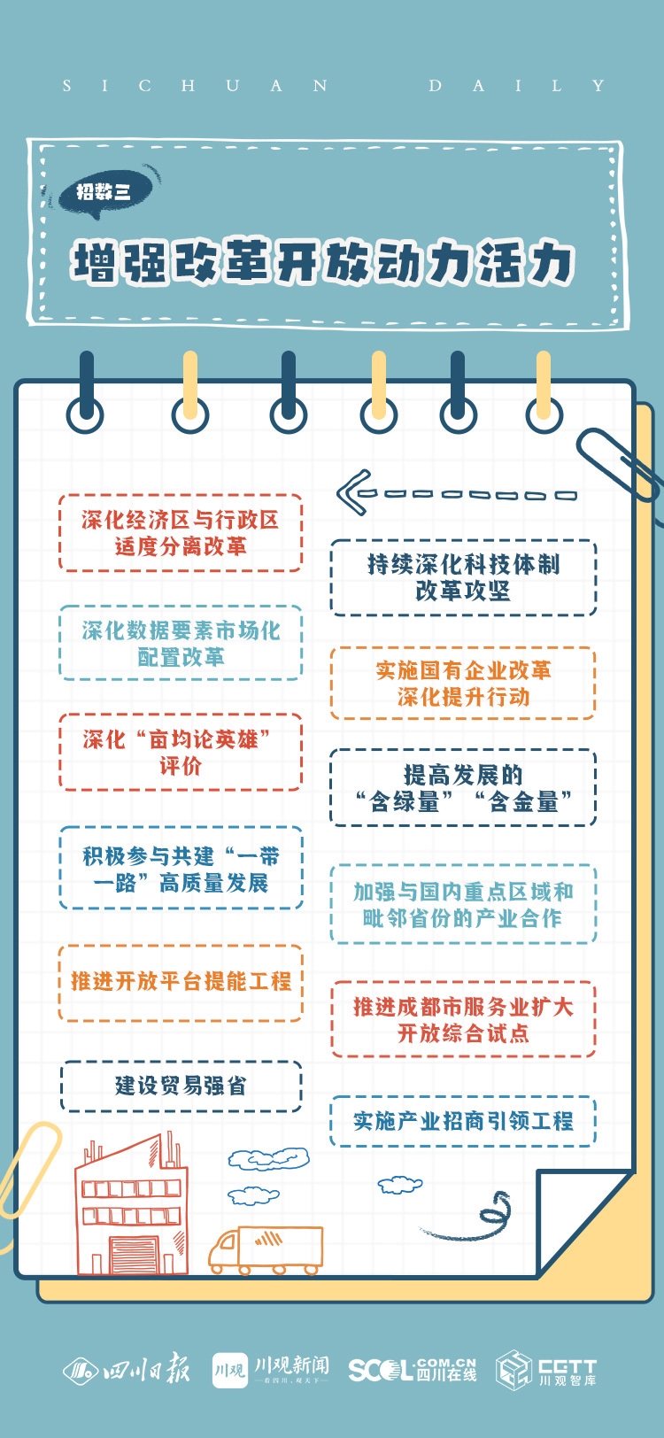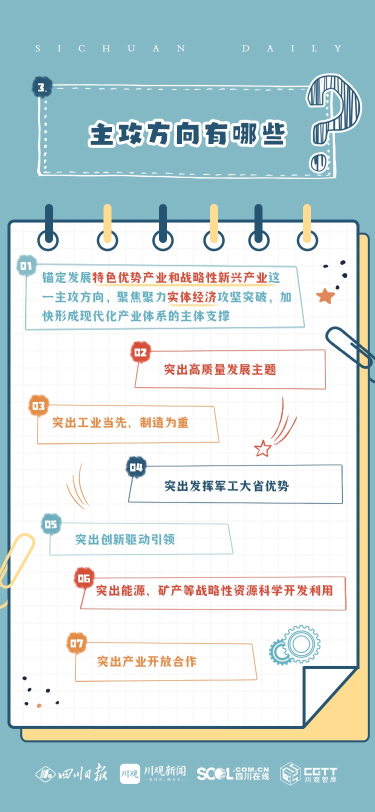 省委十二届三次全会学习手账来了!收藏学习 来源:四川在线 发布时间:2023-07-03 17:25:51 浏览次数: 次 【字体:小 大】 《中共四川省委关于深入推进新型工业化加快建设现代化产业体系的决定》今日发布。四川如何加快建设服务国家全局体现四川特色的现代化产业体系?有哪些主攻方向?发展目标是什么?一组手账带你学。戳下图进入H5学习↓策划:赖永强 胡敏 王代林 任鸿执行:邓强 梁庆美编:刘津余 张丽娟 周桐技术:唐欣艳 来源: 四川在线 终审:何晓波 分享到: 关闭本页 【打印正文】