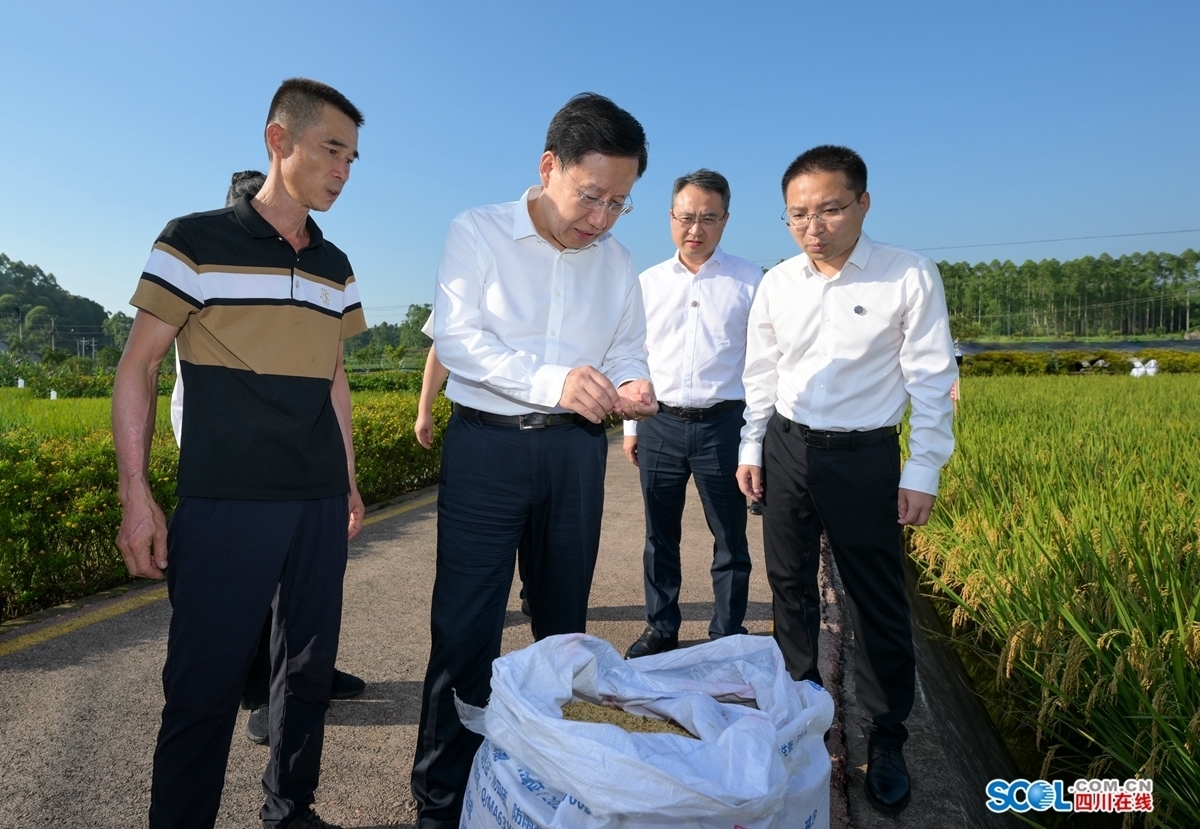 8月21日,省委书记王晓晖到荣县赖河坝粮油现代农业园区调研,察看水稻成熟及收割情况,了解秋粮稳产增产及助农增收情况。