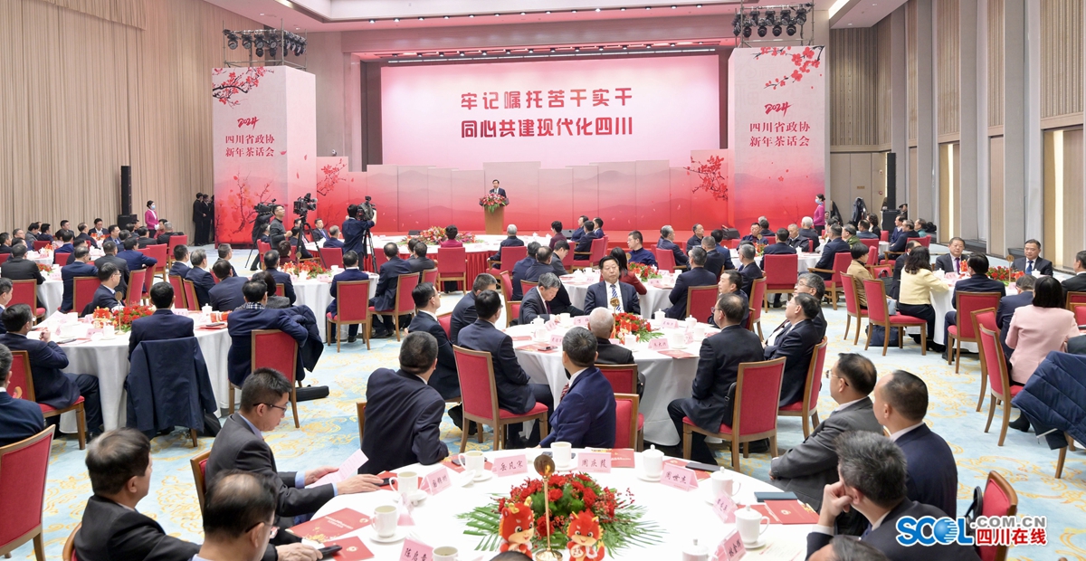 四川省政协2024年新年茶话会在成都举行 王晓晖讲话 黄强田向利施小琳出席