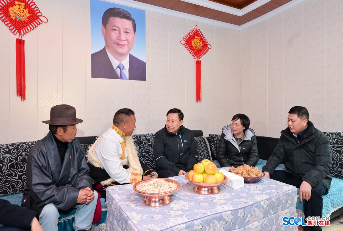 2月4日,省委书记、省人大常委会主任王晓晖到阿坝州黑水县色尔古镇麻都社区困难群众阿哈基家中看望慰问。