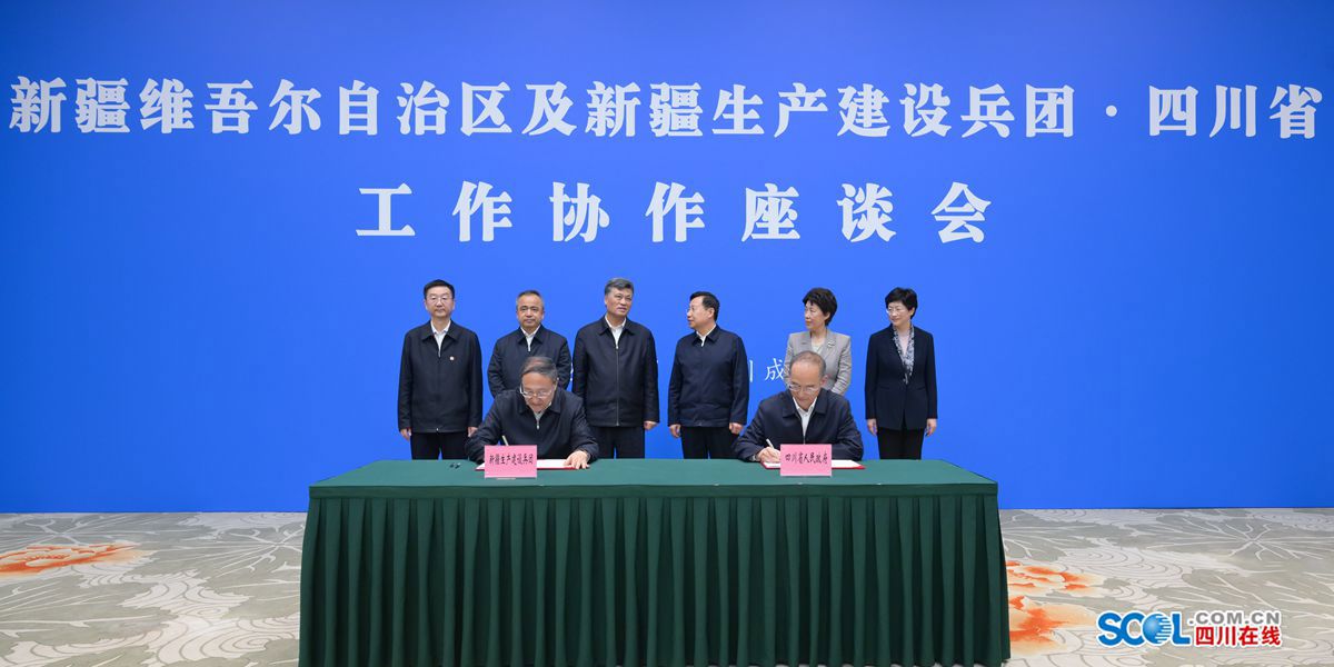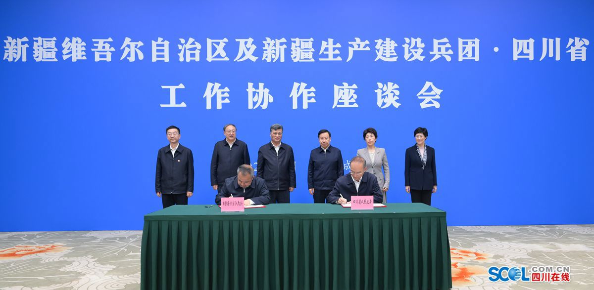 座谈会上,在两省区领导见证下,双方签署《新疆维吾尔自治区人民政府四川省人民政府战略合作框架协议》《新疆生产建设兵团四川省人民政府战略合作框架协议》。