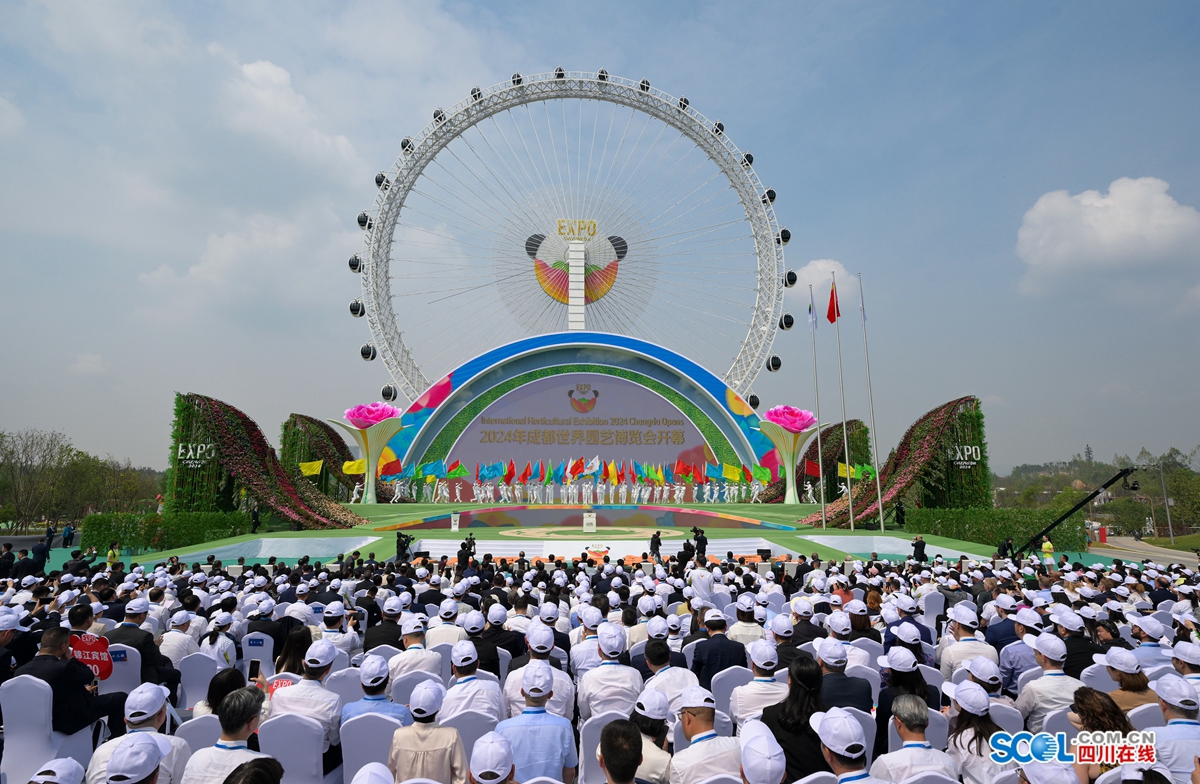 4月26日上午,以“公园城市 美好人居”为主题的2024年成都世界园艺博览会在成都东部新区主会场天府眼广场开幕。国家副主席韩正出席开幕式并致辞。第十一届全国政协副主席、中国花卉协会名誉会长张梅颖,四川省委书记、省人大常委会主任王晓晖,四川省委副书记、省长黄强,国家林草局局长关志鸥,四川省委副书记、成都市委书记施小琳出席开幕式。黄强、国际园艺生产者协会主席莱昂纳多·卡皮塔尼奥、中国花卉协会会长江泽慧分别致辞。