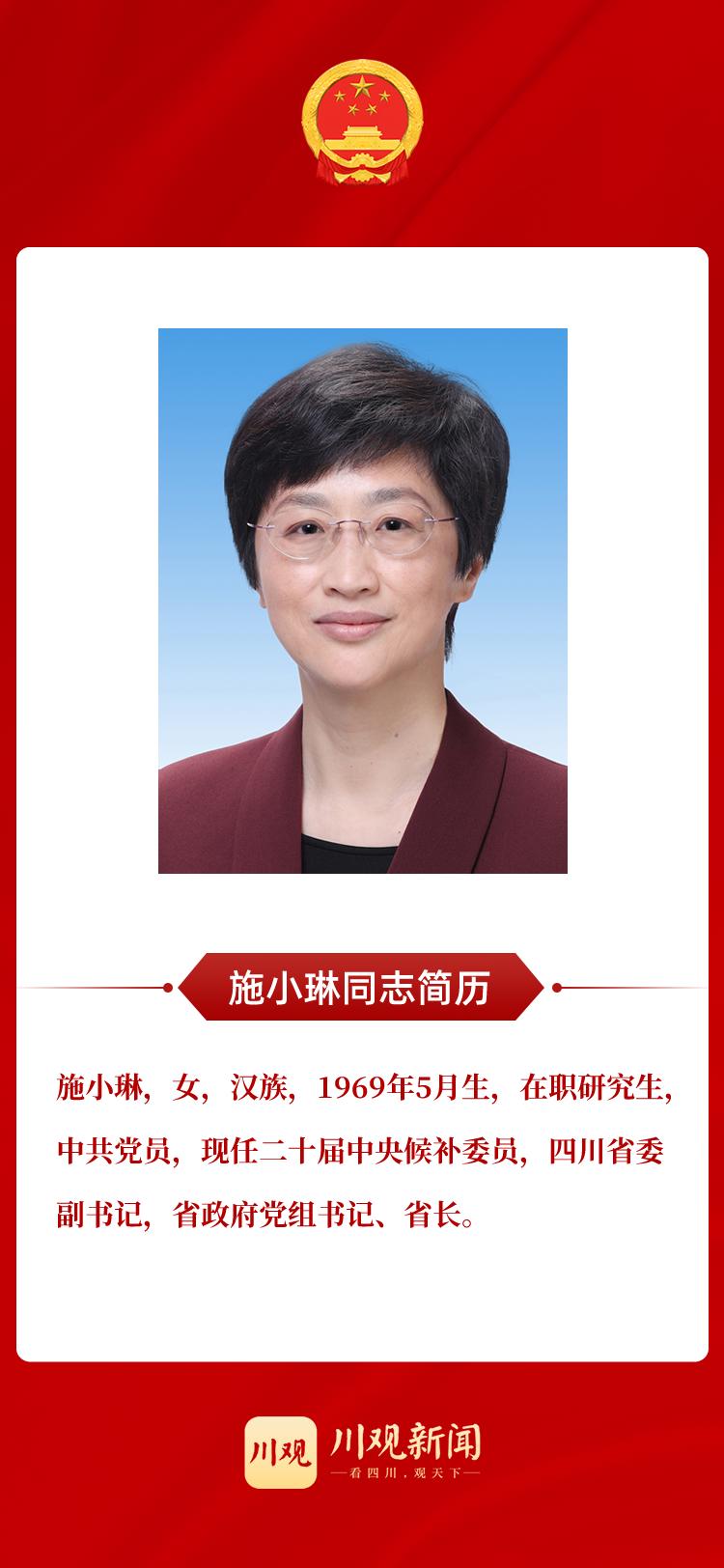 施小琳当选四川省人民政府省长(照片+简历)