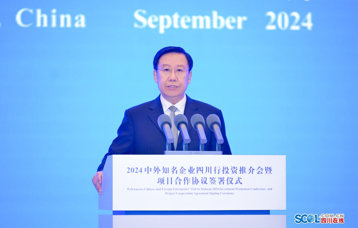 9月25日,2024中外知名企业四川行投资推介会暨项目合作协议签署仪式在成都举行。省委书记、省人大常委会主任王晓晖出席并致辞,省委副书记、省长施小琳主持。