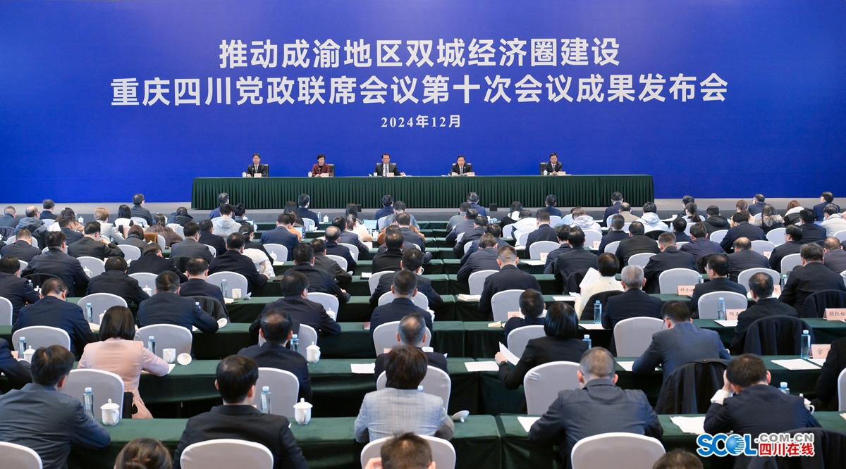 施小琳在通报四川省2024年推动成渝地区双城经济圈建设情况时说,四川强化成渝双核带动、市县多层互动、部门工作联动,推动双城经济圈建设走深走实、积厚成势。一是聚力“强化经济承载和辐射带动功能”,加强成都与重庆主城都市区极核联动,加快推进成渝中部崛起,推动毗邻地区协同发展,川渝共建产业集群、共办重大展会、共促文旅消费,推动经济量质齐升,建设具有全国影响力的重要经济中心取得新进展。二是聚力“强化创新资源集聚和转化功能”,提升科技创新策源功能,搭建科技成果供需对接平台,促进创新链产业链资金链人才链加速融合,建设具有全国影响力的科技创新中心实现新突破。三是聚力“强化改革集成和开放门户功能”,加快畅通西部陆海新通道,深化经济区与行政区适度分离改革,不断提升开放型经济水平,建设改革开放新高地迈上新台阶。四是聚力“强化人口吸纳和综合服务功能”,推进民生实事项目,发布第四批“川渝通办”事项,实现社保卡“一卡通一码通”、高铁公交化,推进电子健康卡互认扩面,加快区域医疗中心建设,两地公共服务加速“一体化”,建设高品质生活宜居地展现新气象。