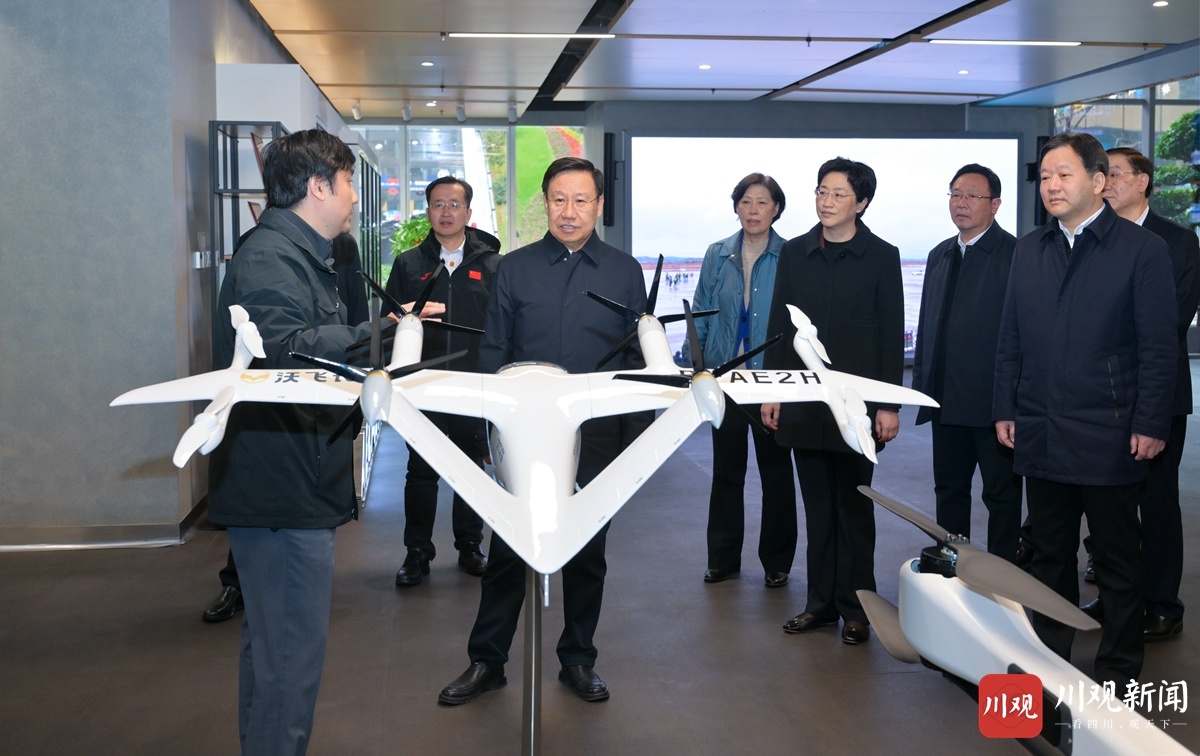 2月8日,王晓晖、施小琳、田向利等省领导到位于成都高新区的四川沃飞长空科技发展有限公司调研,观看企业飞行产品展示,了解不同飞行器应用场景和企业在蓉生产基地建设推进情况。